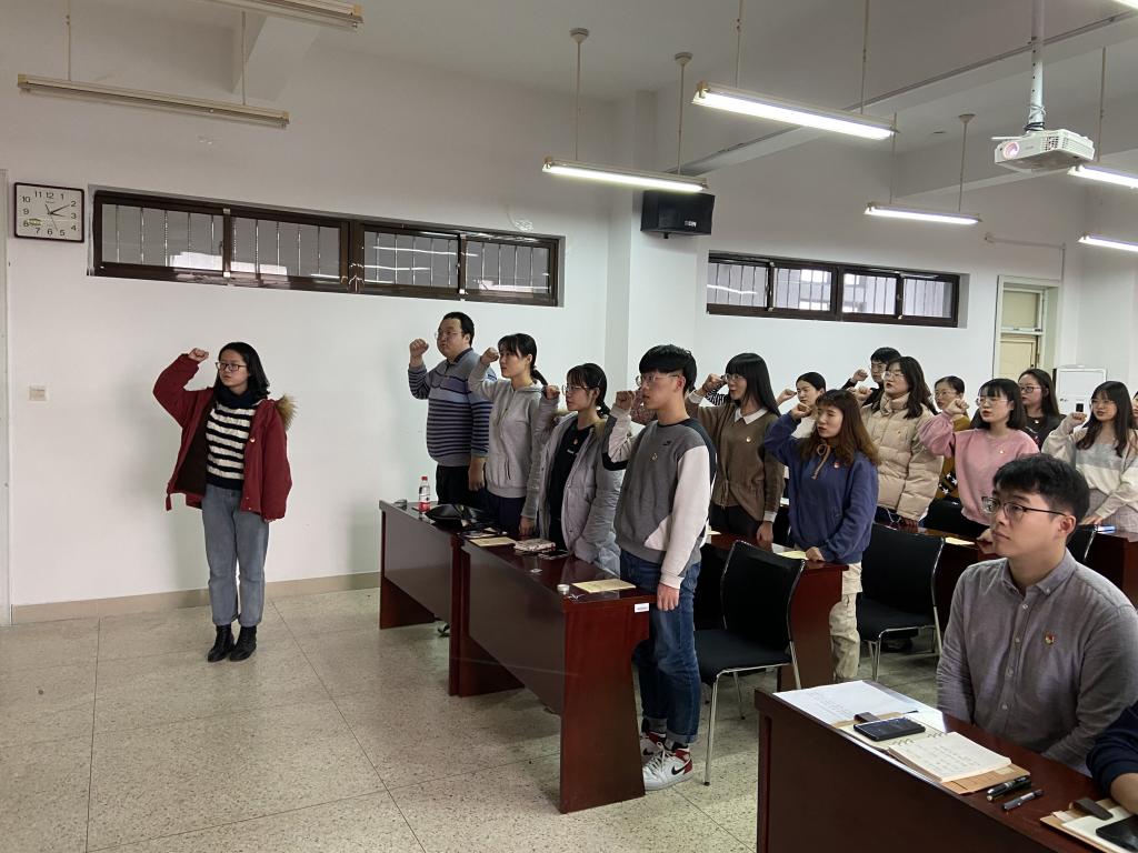 本站讯12月13日下午,我院于图东环楼304举行新党员入党宣誓仪式。我院党委副书记王鹏飞,辅导员王祎璠、赵德豪、王紫山及全体本科生党员参加了此次仪式。仪式由王祎璠主持。