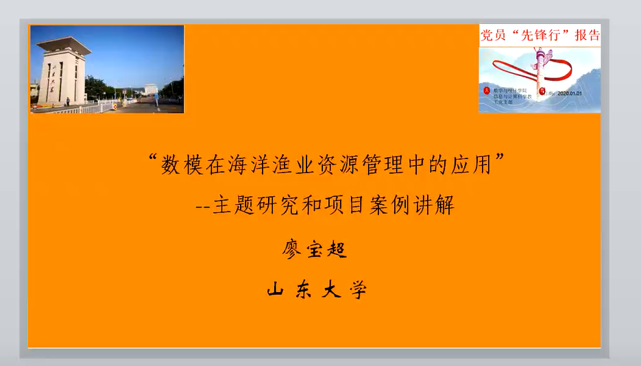 本站讯 2021年1月1日晚,77779193永利信息与计算科学系教工党支部于线上组织开展了“坚定目标齐奋斗 同频同绘同心圆——党员‘先锋行’系列报告第五期”活动。信息与计算科学系教工党支部全体党员及部分学生代表参加了本次报告会。报告会由信息与计算科学系教工党支部书记亓兴勤主持,支部党员廖宝超担任主讲人。