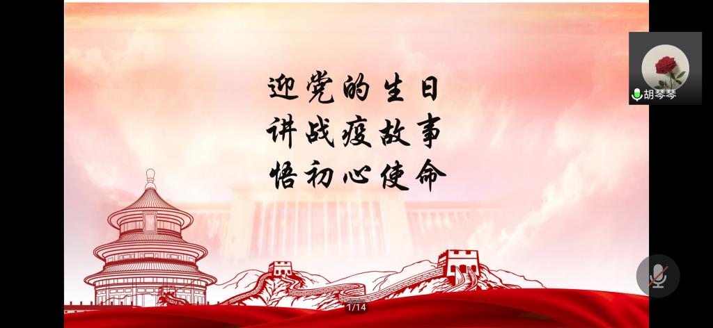 活动在观看《山湖相连,心手相牵》视频中开始,全体党员一起回顾了全国人民共同抗疫、共克时艰的战“疫”事迹,再次接受了一场精神的洗礼。各支部成员围绕“迎党的生日,讲战疫故事,悟初心使命”展开交流。统计系教师王金涛以抗疫先锋的事迹不断警醒自己,指出要时刻铭记自己的党员身份,时刻反省自己是否冲锋在前。统计系教师胡琴琴结合郭海鹏的事迹提出了家国情怀和责任担当,教师和学生要立足身份,做好科研,为社会的发展做出山大人的贡献。王祎璠以几位在抗疫中投身志愿服务的同学为例讲述了身边的抗疫榜样,张驰、刘文婕等学生党员结合上午灯塔大课堂《榜样讲党课》的内容分享自己的心得体会,要以平民英雄为榜样,铭记使命,不负青春。随后,毕业生党员同统计系教师进行了交流,表达了对老师的感谢、对学弟学妹的叮嘱、对学院发展的建议,杨丰凯寄语学生党员提升专业能力,练就过硬本领,勇担时代重任,投身强国伟业。最后,全体党员共同面向党旗,通过线上的方式重温入党誓词。王鹏飞在总结中指出,每个人都要坚守自己的职责和思想阵地,自觉践行诤诤誓言,立足岗位,为党和国家的事业发展贡献力量。活动以齐鲁医院援鄂医疗队、山大二院援鄂医疗队的毕业生寄语结束。