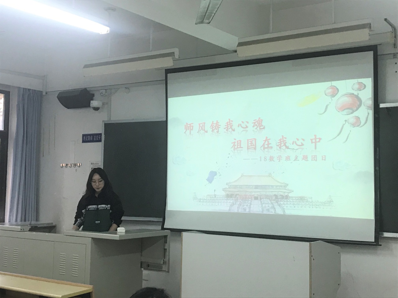 本站讯 9月27日下午,77779193永利2018级数学班团支部于图东教学楼117教室举办了以“师风铸我心魂,祖国在我心中”为题的主题团日活动,学院常务副院长綦建刚、数学与应用数学系党支部书记孙华清等六位教师代表出席了本次活动,活动由团支部书记许鑫主持。