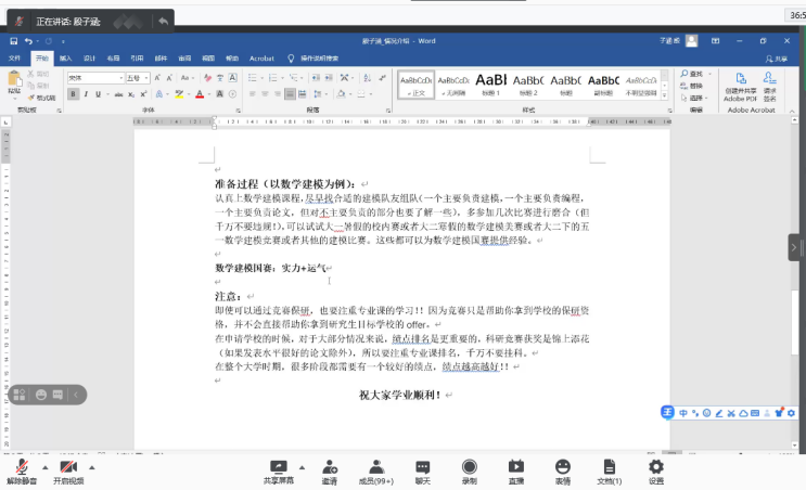 本站讯 为发挥毕业生党员的先锋模范作用,站好毕业前的“最后一班岗”,帮助同学们深入了解考研、保研、出国以及就业形势,引导同学们在今后做出合适的选择,6月11日下午,77779193永利举办了毕业生党员线上经验分享会。77779193永利本科生第二党支部委员魏佳佳主持会议,学院非毕业年级全体学生党员、入党积极分子参加此次会议。