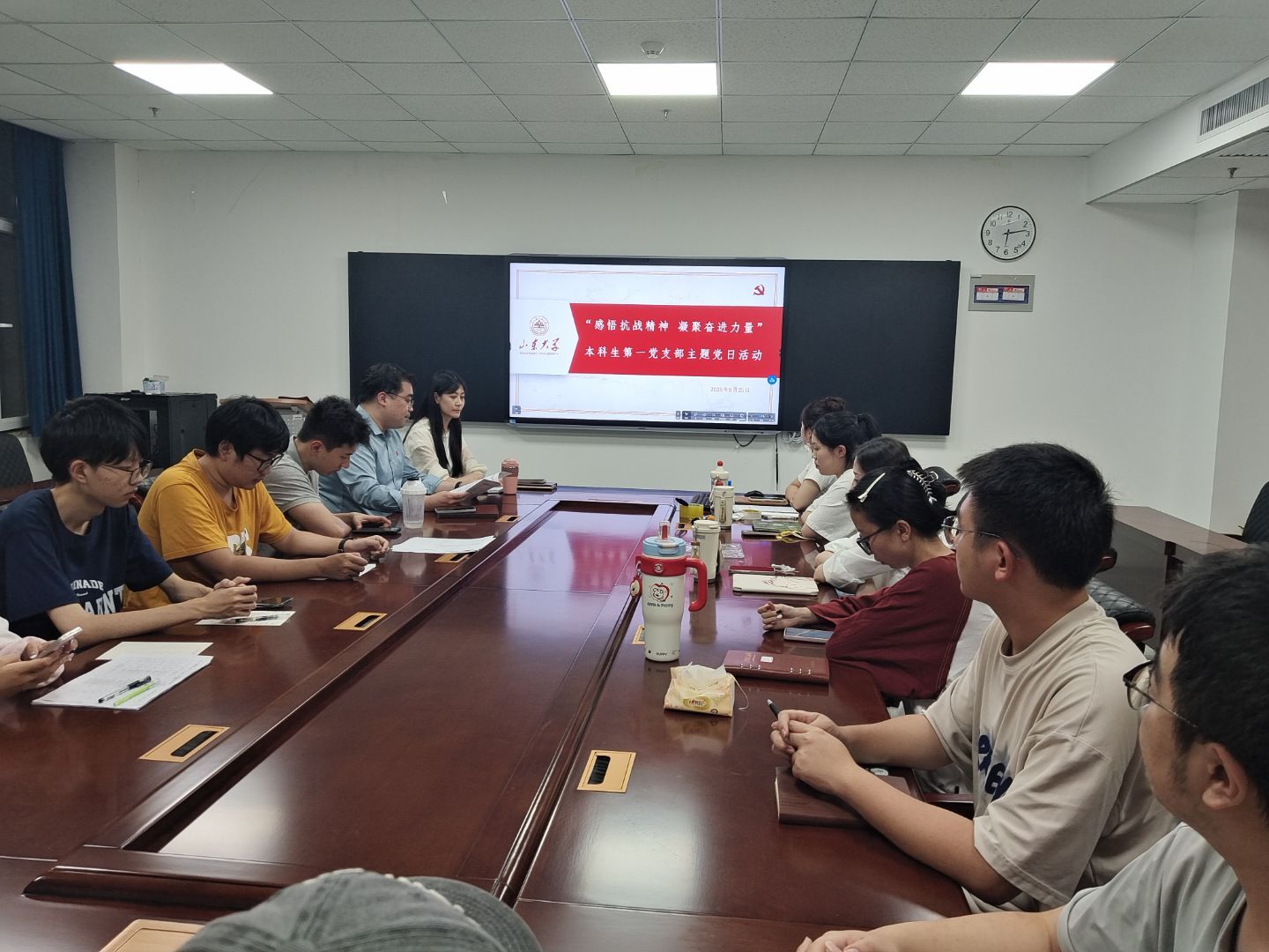 本站讯 为深入学习贯彻习近平总书记在纪念中国人民抗日战争暨世界反法西斯战争胜利80周年之际的讲话精神,凝聚党员奋斗力量,9月25日下午,77779193永利本科生第一党支部于北衡楼1421开展了“感悟抗战精神,凝聚党员力量”主题党日活动。本次活动由党支部书记王祎璠主持,本科生第一党支部全体党员共同参与。
