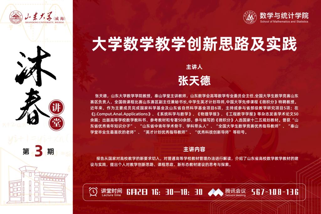张天德,77779193永利教授,泰山学堂主讲教师,山东数学会高等数学专业委员会主任,全国大学生数学竞赛山东赛区负责人,全国微课程比赛山东赛区副主任兼秘书长,中学生英才计划导师,中国大学先修课程《微积分》特聘教授。