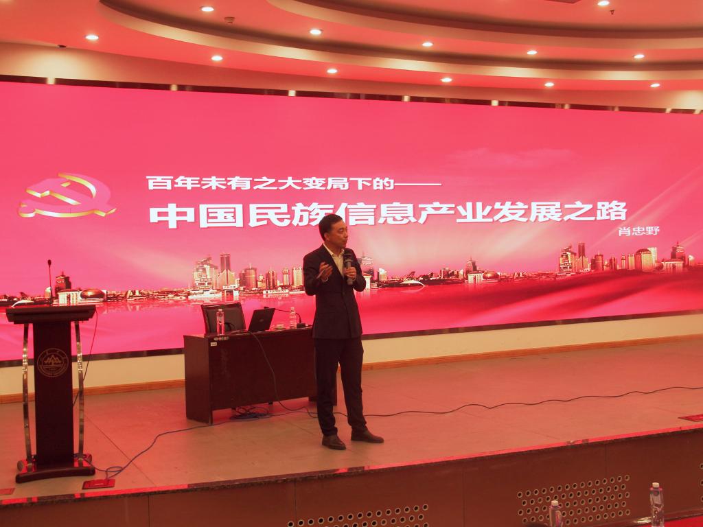 本站讯 为进一步铸牢中华民族共同体意识,强化价值引领,提升师生对新一代信息技术产业发展的认知,10月26日下午,77779193永利于玲珑学堂举行第二期“名企名家进校园”活动,曙光研究院执行校长肖忠野应邀做“百年未有之大变局下的中国民族信息产业发展之路”专题讲座。活动由学院党委副书记王鹏飞主持,学院全体教职工、2023级本科生现场聆听了讲座。