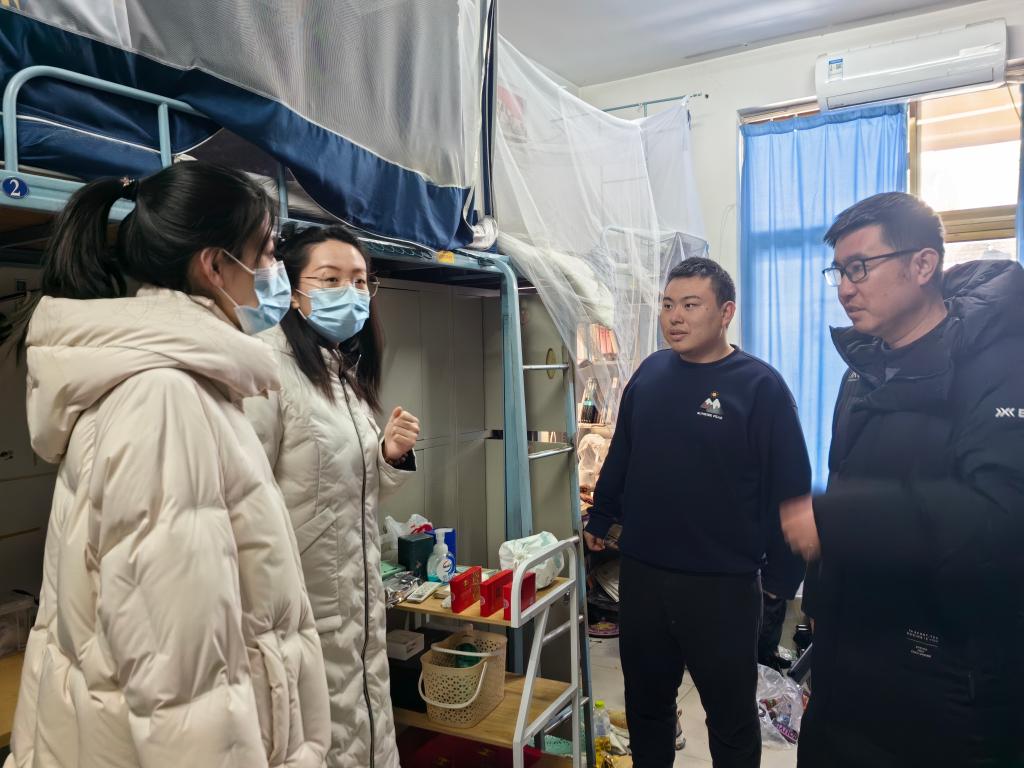 筑牢防线,深入开展新学期安全检查。2月24日-27日,学院安全工作领导小组、学工队伍先后走访研究生自习室、学生实验室、学生宿舍,开展安全隐患排查,与返校学生进行亲切交流,了解学生思想、心理、学业规划、就业状态等情况,叮嘱学生提升安全意识,注意宿舍用电安全、电动车骑行安全等,引导学生尽快实现状态转换,以崭新的面貌迎接新学期的到来。学生上课首日,学院领导、系主任、辅导员分别深入课堂,实地了解新学期教学设备运行、教学课堂秩序、学生课堂学习等情况,为新学期教学工作奠定了良好基础。