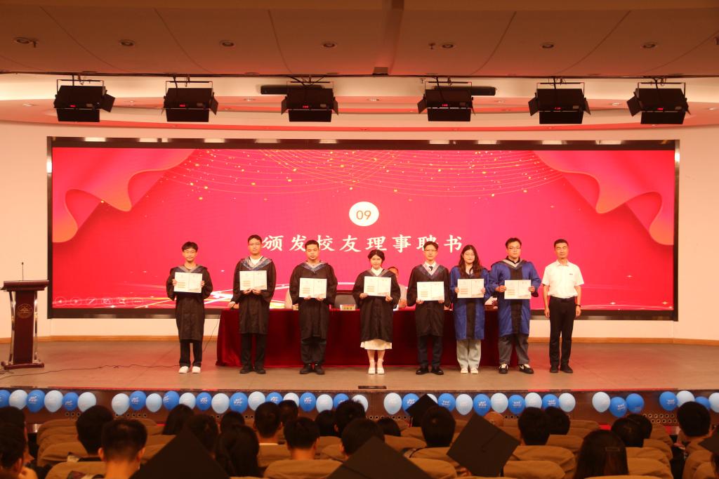 于振涛为学院选聘的校友理事颁发聘书,寄望他们能够积极融入各地校友组织,带头链接学院和校友工作,为学校繁荣和学院发展凝心聚力。