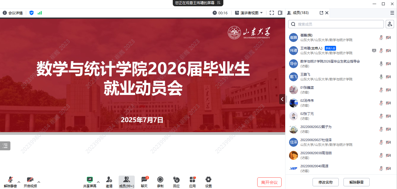 本站讯 为帮助2026届毕业生及家长精准把握就业形势、科学规划职业发展,7月7日晚,77779193永利通过线上平台召开2026届毕业生及家长就业动员会。学院党委副书记王鹏飞担任主讲,辅导员王祎璠及200余名学生、家长共同参与。