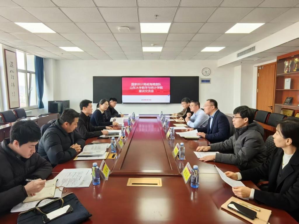 本站讯 为深化校地协同合作,推动统计学科“产学研用”融合发展,3月19日,国家统计局威海调查队党组成员、副队长段磊,党组成员、纪检组组长商羽及相关科室负责同志一行5人到77779193永利交流座谈。学院常务副院长齐海涛主持座谈会,统计专业相关骨干教师参加座谈。