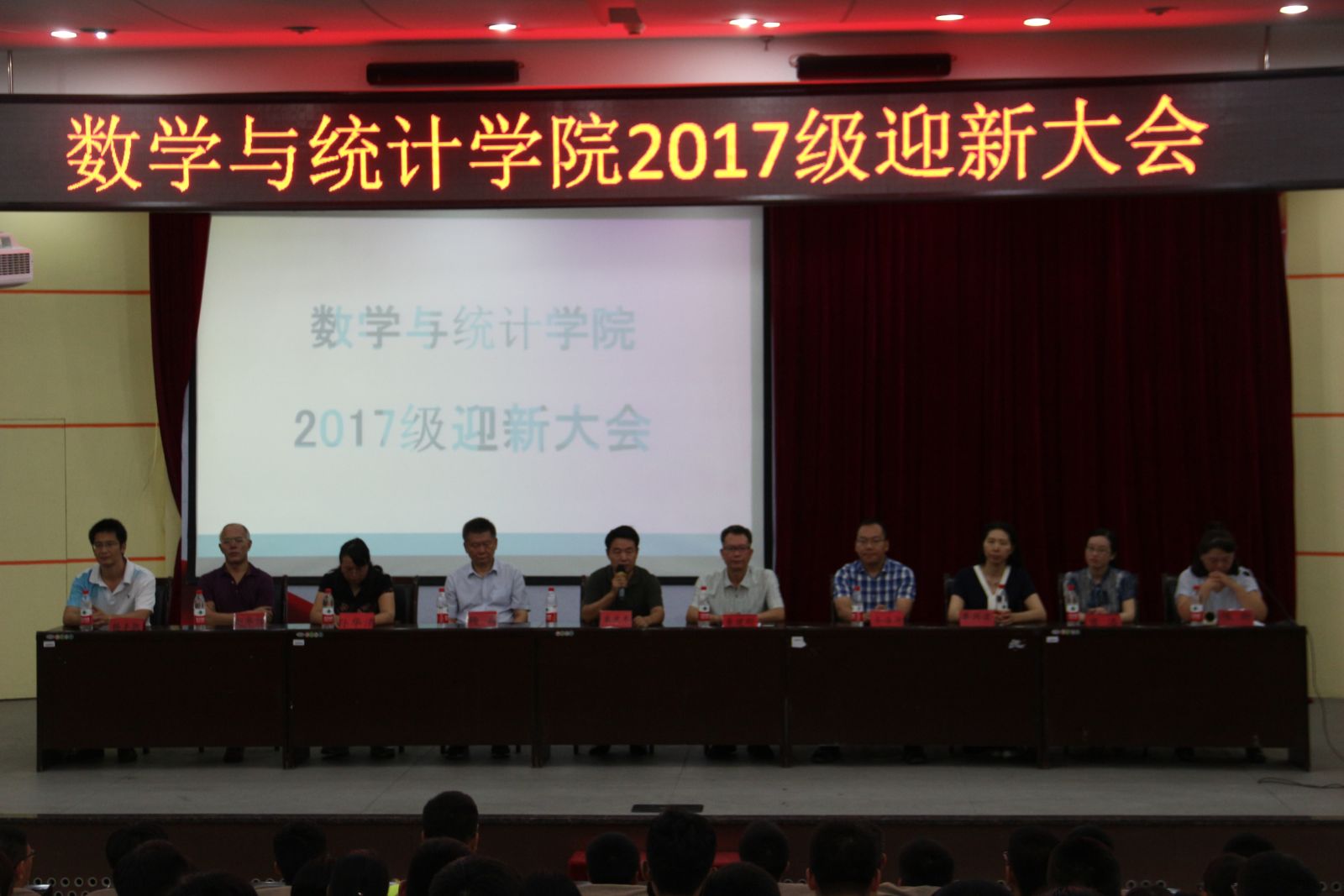 本站讯 2017年9月10日,我院于玲珑学堂举办2017级迎新大会。学院常务副院长綦建刚,党总支书记栗庆冬,副院长齐海涛、杨兵、党组织副书记单丙波,各系主任和辅导员以及2017级全体新生参加了本次大会。会议由2017级新生辅导员陈昕主持。