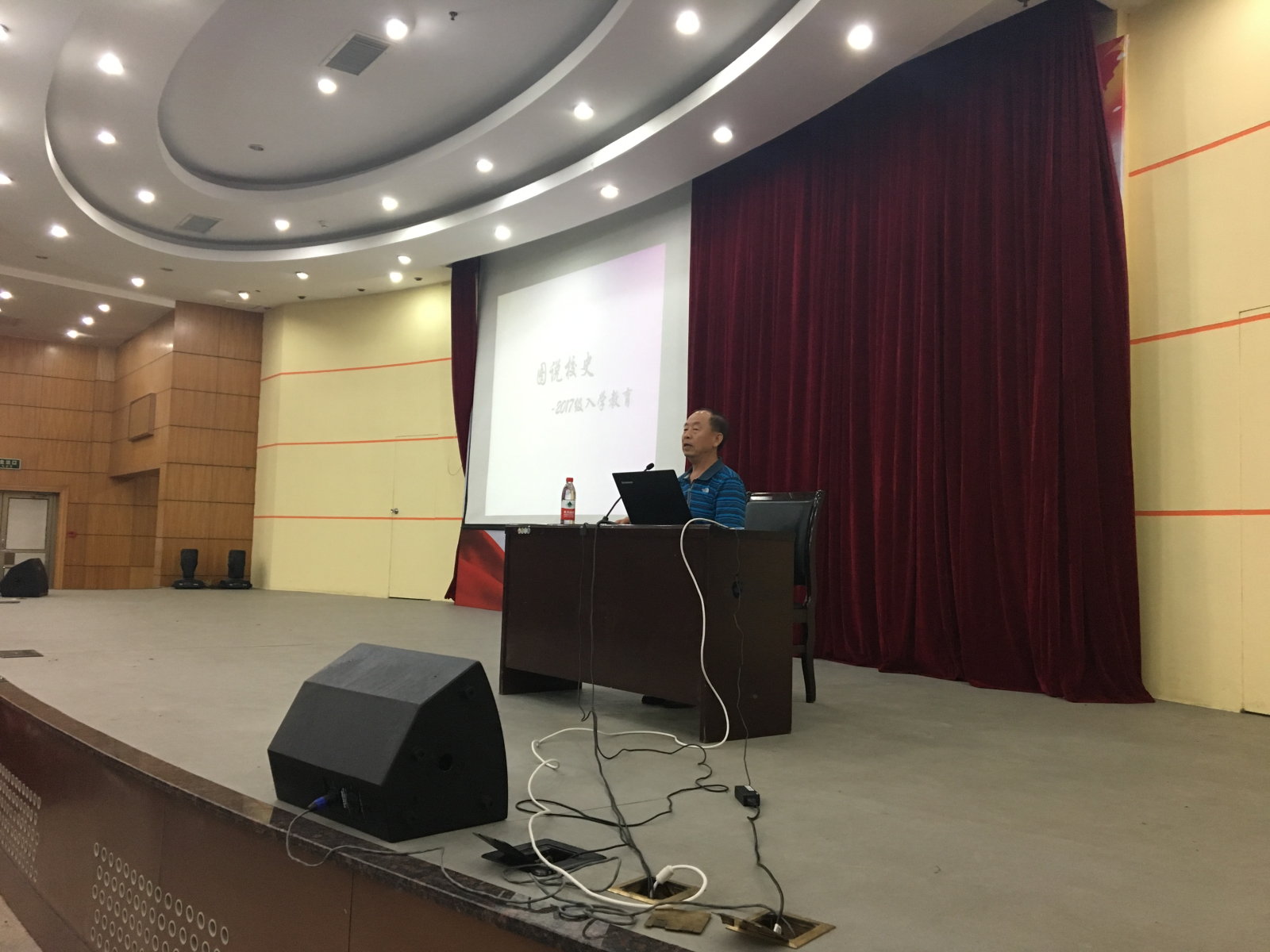 活动伊始,戚务政对学校的整体情况进行了简单的介绍,并对学校从建校以来的招生和建设进行了详细的讲解,同时根据自己所拍摄的照片,介绍了学校最初的领导班子以及他们前往各地招生的留念。紧接着,戚务政着重介绍了学校建筑的变化,随着年代的变迁,学校的建筑越来越现代化,绿化越来越完善,校园越来越美丽。此外,他向同学们展示了建校以来,学校举办的教职工活动,展现了丰富多彩的校园文化。之后,戚务政又展示了自己在校园中抓拍的同学们认真学习的样子,告诫同学们在大学期间仍要认真学习,刻苦努力。最终,活动在一片热烈的掌声中落下了帷幕。