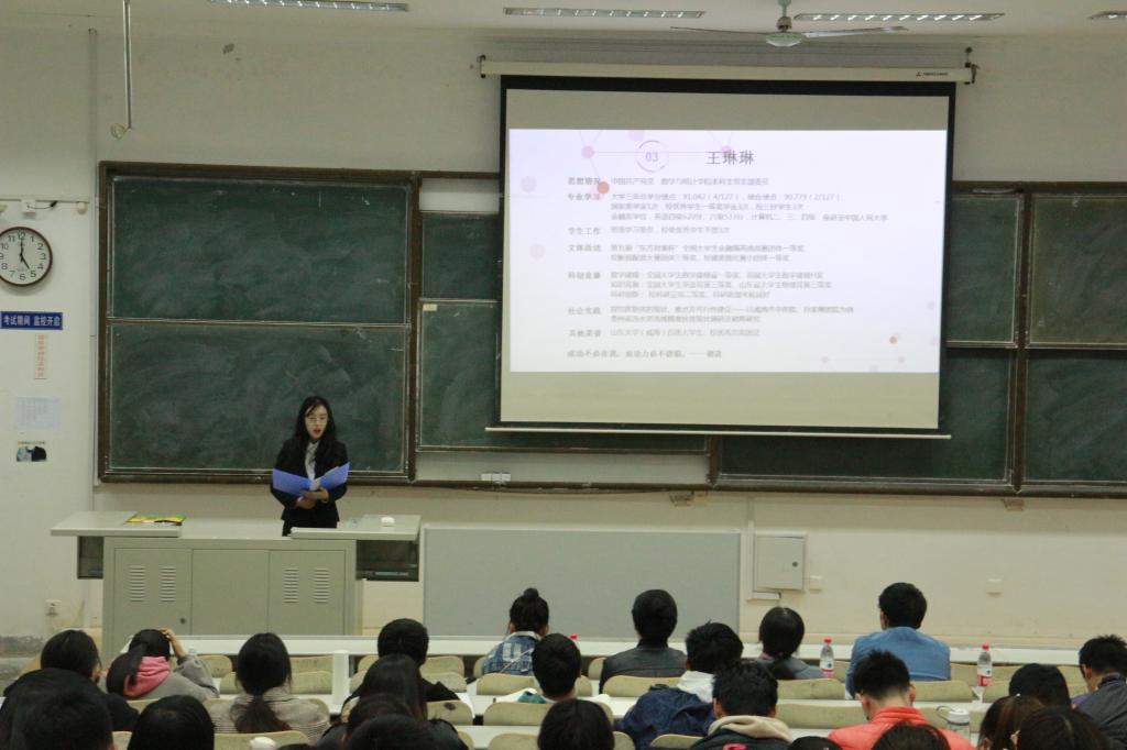 先进班集体答辩代表分别从班级思想引领、科研创新、文体活动等方面对过去一学年中班级整体风貌进行展示,各班级充分展现出自身特色,令人印象深刻;优良学风班的答辩则从班级良好的学风建设以及班级成员的学习热情及取得的优良成绩入手,向大家展示出数院学子“知书达理,敦学求真”的学习能力与态度。在“自强之星”答辩环节,候选人在学习学业、学术创新、爱国奉献、道德弘扬、科技创新、自主创业、志愿公益等方面,展现出了奋勇争先、拼搏进取的意志力,为大家讲述了一件件自立自强的故事;“十佳百优”大学生候选人在台上自信全面的展示自己截至目前取得的优异成绩、科研成果和课外经历,其各方面全面发展让低年级的学生深受启发。活动最后,王鹏飞对本次答辩会进行了总结,表达了对所有参加答辩同学的肯定,并对各团支部的班级风采展示形式提出了指导性意见,同时期望2019级同学以优秀学长学姐为榜样,刻苦学习,积极进取。