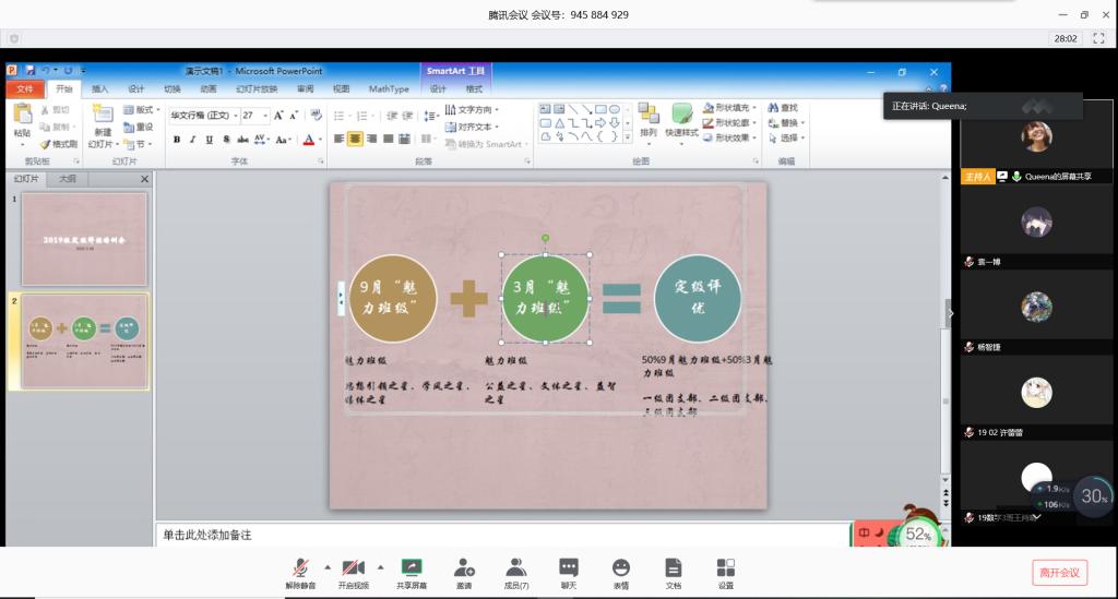 本站讯 2020年3月28日早8:30,我院举办2019级定级评优线上培训会。我院2019级全体团支书参加本次会议,会议由我院学生团委副书记张驰主持。