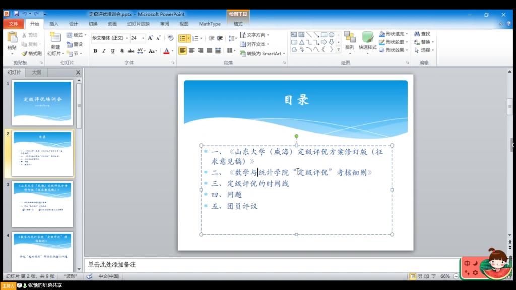 会议伊始,张驰介绍了本次会议的主要内容,强调定级评优工作的重要性,突出了77779193永利一校三地统一进行定级评优工作的改变。会上,张驰向全体与会人员详细介绍了定级评优工作的评审规则、流程及相关事项等,包括上交审核材料时需要注意的格式问题等相关内容,并说明了即将到来的三月份定级评优工作的时间线。之后与会人员进行了工作交流,部分班长团支书提出了自己的疑问,张驰一一进行了详细的解答。最后,张驰介绍了包括评议步骤、评议标准等团员评议工作的相关内容。