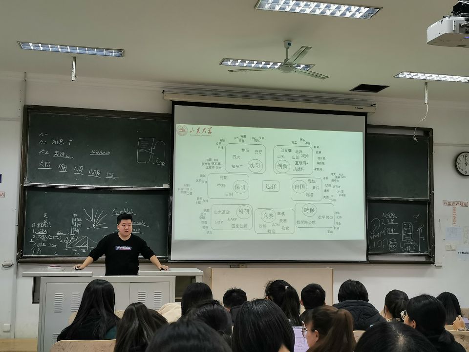 本站讯 10月27日下午,我院于图东环楼119室举办数学嘉年华之“数海无涯,优秀作舟”优秀学子面对面交流会。本次活动邀请了已保研至北京中科院计算所的2016级信息与计算科学专业的李嘉豪、在社会实践方面有丰富经验的王之彦以及现任我院学生会主席的魏佳佳进行经验分享,学院各年级学生积极报名参与,活动由孙瑀繁主持。