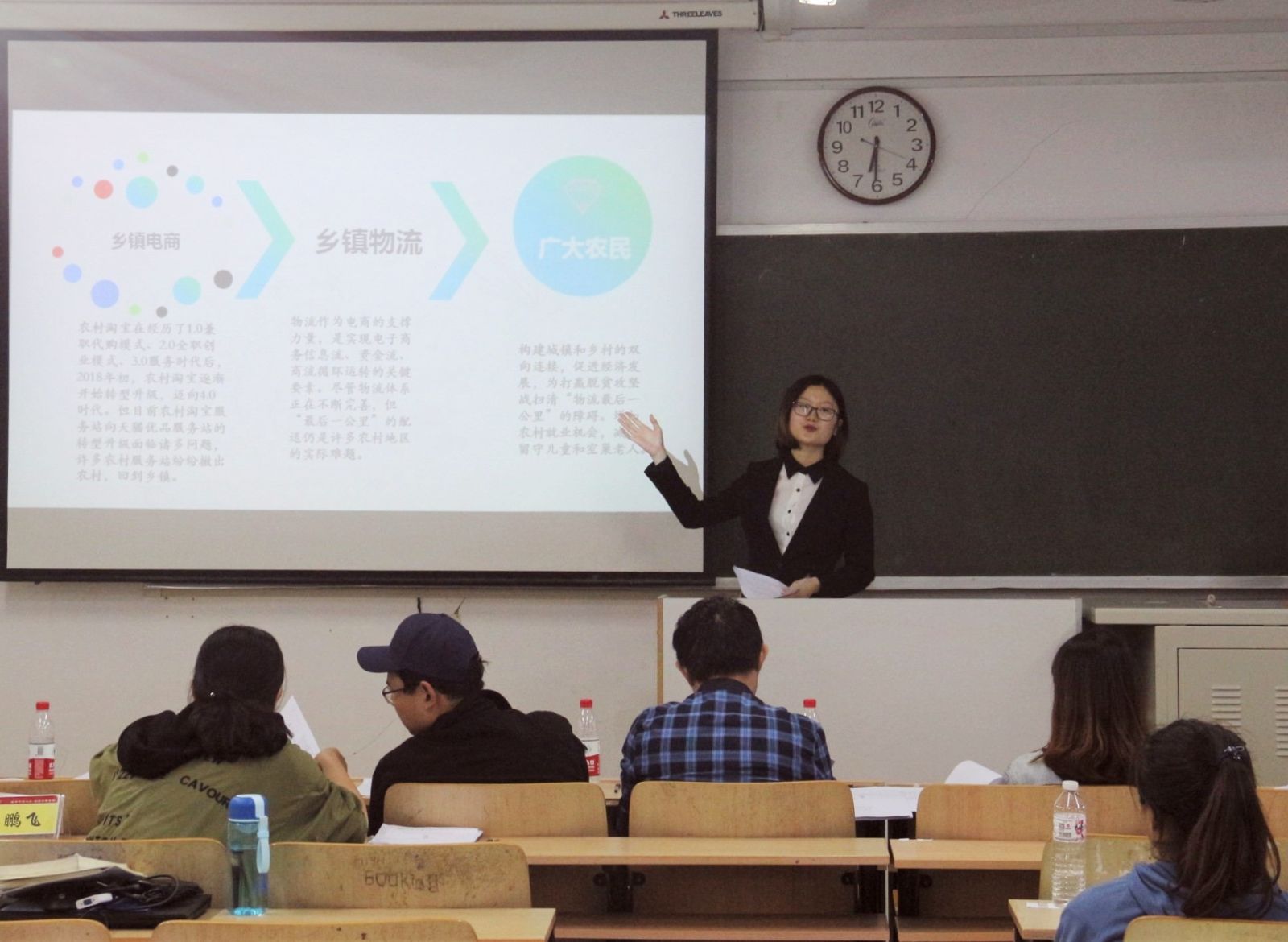 主持人致开幕词,介绍评委老师和答辩流程。11支团队依次上场,在5分钟之内进行汇报及PPT展示,向评委和台下观众介绍各自团队的项目意义、研究方法、实践过程以及预期实践成果。在答辩环节,评审老师针对每个团队在汇报中的问题提出疑问,并给出点评和指导建议;答辩人员沉着思考,配合有序,虚心接受老师的指正和意见。王鹏飞针对各团队在答辩过程中出现的常见性问题进行了概括总结,强调了社会实践选题过程中剖析社会现状时要防止表面化,问题分析要深入,题目选取要准确、具体,调研落脚点的范围要可控,对调研数据的真实性、调研地的代表性以及报告内容的原创性问题提出了建议,希望同学们能够真正地在社会实践过程中学习成长。孙磊希望各团队都能从本次答辩指导中看到共同存在的问题,找到自己团队可以改进的地方,从而更好地开展社会实践。至此,2019年暑期社会实践立项答辩指导会圆满结束。