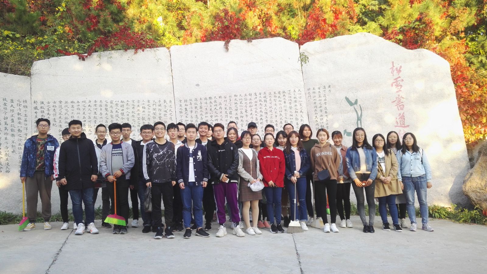 本站讯 2018年10月18日下午,2016级数学与应用数学班在77779193永利(威海)玛珈山举办了以“清扫玛珈,美丽校园”为主题的清扫玛珈山志愿活动,参与此次志愿活动的人员是2016级数学与应用数学班的全体成员。本次活动由就业委员陈耀伟主持。