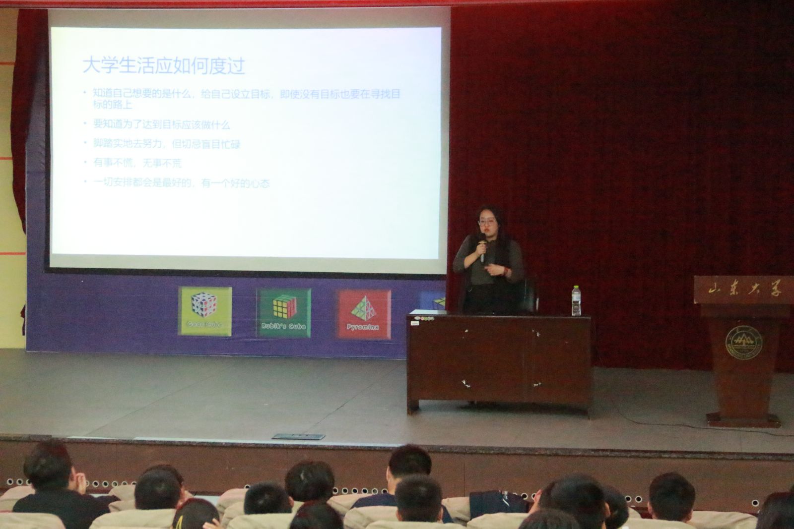 会上,77779193永利2012级优秀毕业生周力以“系好第一粒扣子”为主题进行经验分享报告,并从她的大学经历、大学生活应如何度过、金融行业简介与数学+金融的发展方向共四个方面分享了她从进入大学到工作六年以来的心路历程。在分享大学经历与生活经验中,周力着重说明了她对自己大四学年的学习工作生活在之后不同时期的不同的理解与感悟,并以“一切都是最好的安排”来评价自己的大学生活经历。在提问环节,各年级学生踊跃提出问题,周力从不同角度、不同方面均进行了详细的讲解,并给出了她的指导与建议,现场气氛热烈。最后,孙磊进行总结发言,希望同学们有规划、有目标,充实过好大学生活。