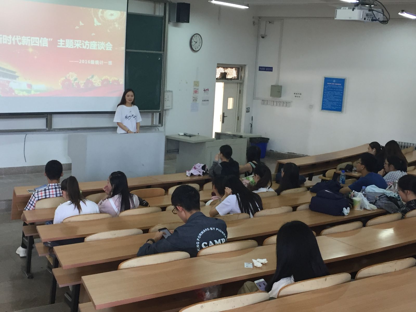 首先,同学们于商院356集合,赵丽梦宣布本次主题座谈会开始,并向大家简明扼要地介绍了本次座谈会的主要内容。学习委员王琳琳向大家介绍自己的学习经验,如何提高学习效率,使大家对学习方式方法有了更进一步的了解。之后,赵圣超介绍社会实践经验,鼓励大家积极参与暑期社会实践,提高自己的社会能力,丰富自己的课余生活。随后,陈琰钰向大家介绍了科研经验,提高了大家参与科研活动的积极性。最后,赵丽梦总结了本次座谈会的主要内容,鼓励大家积极参与,本次主题座谈会也就此落下了帷幕。