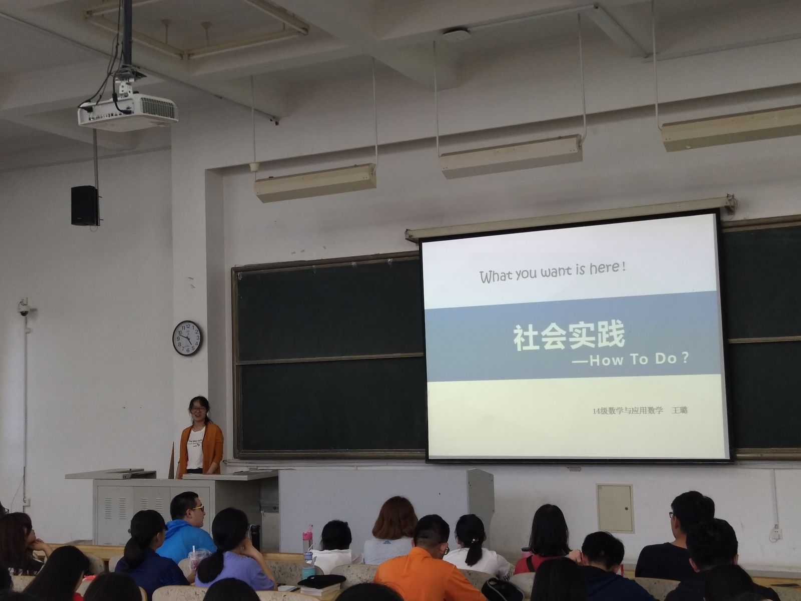 本次会议分为三个部分,分别为社会实践经验交流、安全教育和考试诚信教育。在社会实践经验交流环节,两位2014级的王璐、金元浩作为代表,结合自己的社会实践经历从选题、计划与成员、前期准备、实践成果等方面进行了经验分享。他们指出,社会实践的选题要新,实践前的准备尤其是知识储备要充分,实践过程要细化到人,有序不拖后;并强调了与指导老师沟通的重要性,鼓励大家享受社会实践的过程。辅导员陈昕则分享了自己走访校友的体会,强调了人生的众多可能性以及人际沟通表达能力的重要性,鼓励大家在大学不断锻炼自己,充实自我。而后,她总结了大家的期中考试情况,指出,功夫在平时,打好基础很重要。在安全教育中,她强调,大家一定要提高安全意识,时刻保持清醒,注意网络信息安全。在考试诚信教育中,她提出,同学们要对考试树立正确的态度,认真对待。至此,2017级年级大会落下帷幕。