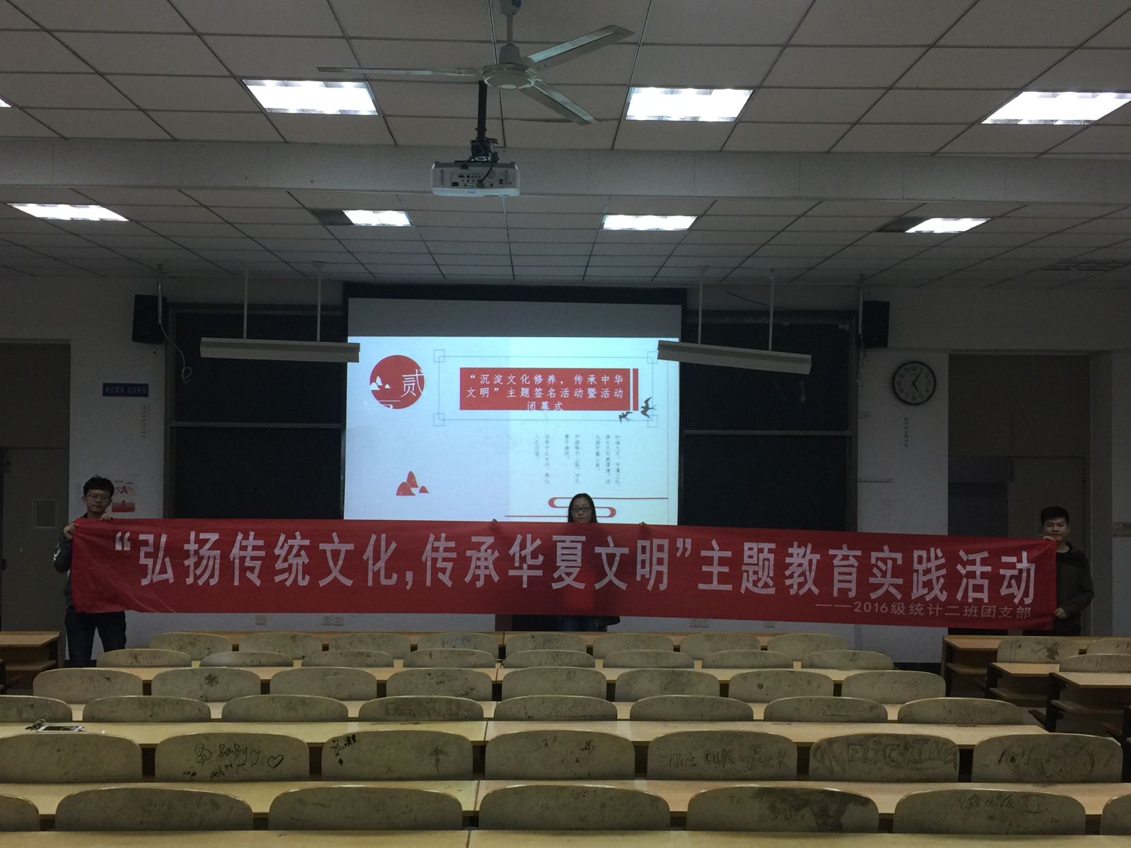 本站讯 2017年11月1日2016级统计二班于图西教学楼219教室举办“沉淀文化修养,传承中华文明”主题感悟交流会暨主题教育立项活动闭幕式。本次活动由班长龚健欢主持,班级全体同学参加。