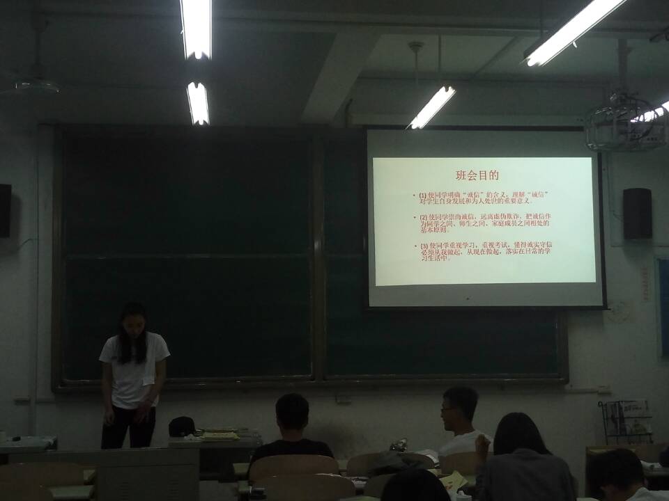班会伊始,宋佩璇直入主题,向大家强调了诚信对学生自身发展和为人处世的重要意义,强调了诚信的重要性。随后,通过同学间的交流对话,大家更加明白了“诚信”二字是生活中必不可缺的一个关键词。紧接着,宋佩璇再将话题引入“考试”,为大家更加明确了考试的意义,就考试应该注意的事项进行强调。由此同学们也感受到了“考试”与“诚信”之间有着密不可分的联系,也通过交流对话更加明确了目前的学习目标,为复习工作的展开打下基础。最后,宋佩璇对此次主题班会进行总结,并动员同学们抓紧最后的时间认真、踏实地学习。至此,本次主题班会落下帷幕。
