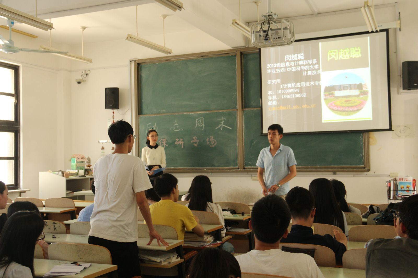 本站讯 5月21日,我院在图东环楼208室和308室举办了“励志周末”系列讲座活动,本次活动分为保研、考研、出国和就业四个专题,分别邀请到了大四优秀学子分享经验,学院部分学生参加了此次活动。
