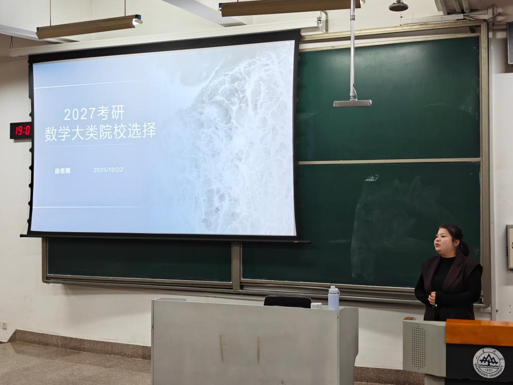 在本次活动中,考研院校规划指导教师由如柠基于近五年数学相关专业的考研数据,对考研趋势与院校选择策略展开深入剖析,为计划在国内深造的同学厘清了时间规划与关键决策要点。翻译学院外语培训中心教师苏青竹则系统介绍了数学专业学生海外留学的申请重点与不同国家院校的特色,并结合留学流程的时间轴和准备材料,助力同学们拓展国际视野。此外,翻译学院外语培训中心负责人宋无为就雅思、托福等语言考试在升学过程中的重要性及雅思托福的区别进行了简要说明。在互动环节,同学们踊跃提问,就计算机考研、申请本科直博、申请研究型硕士、跨专业考研等具体问题与三位主讲嘉宾进行了深入交流。