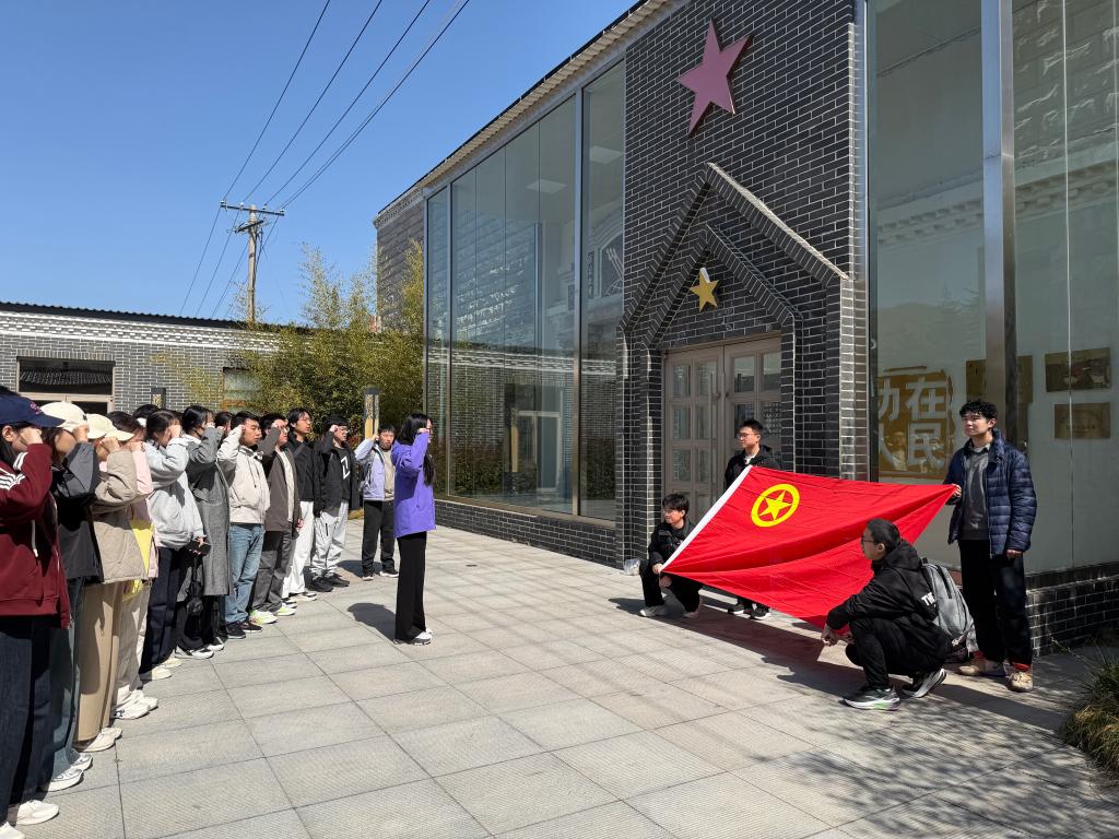 活动最后,全体团员在展馆前整齐列队,举行庄重的缅怀致敬仪式。大家面向鲜红团旗高举右拳,重温入团誓词,誓言铿锵有力、掷地有声,彰显新时代青年坚定不移听党话、跟党走的坚定信念。随后,每位团员写下一句“青春告白”,将担当与承诺汇集成“青春心声”卷轴,在团旗下合影留念,定格青春与信仰同频共振的难忘瞬间,以青春之名赴时代之约,以赤子之心续红色血脉。