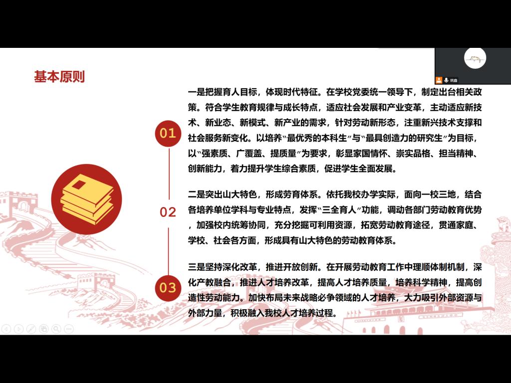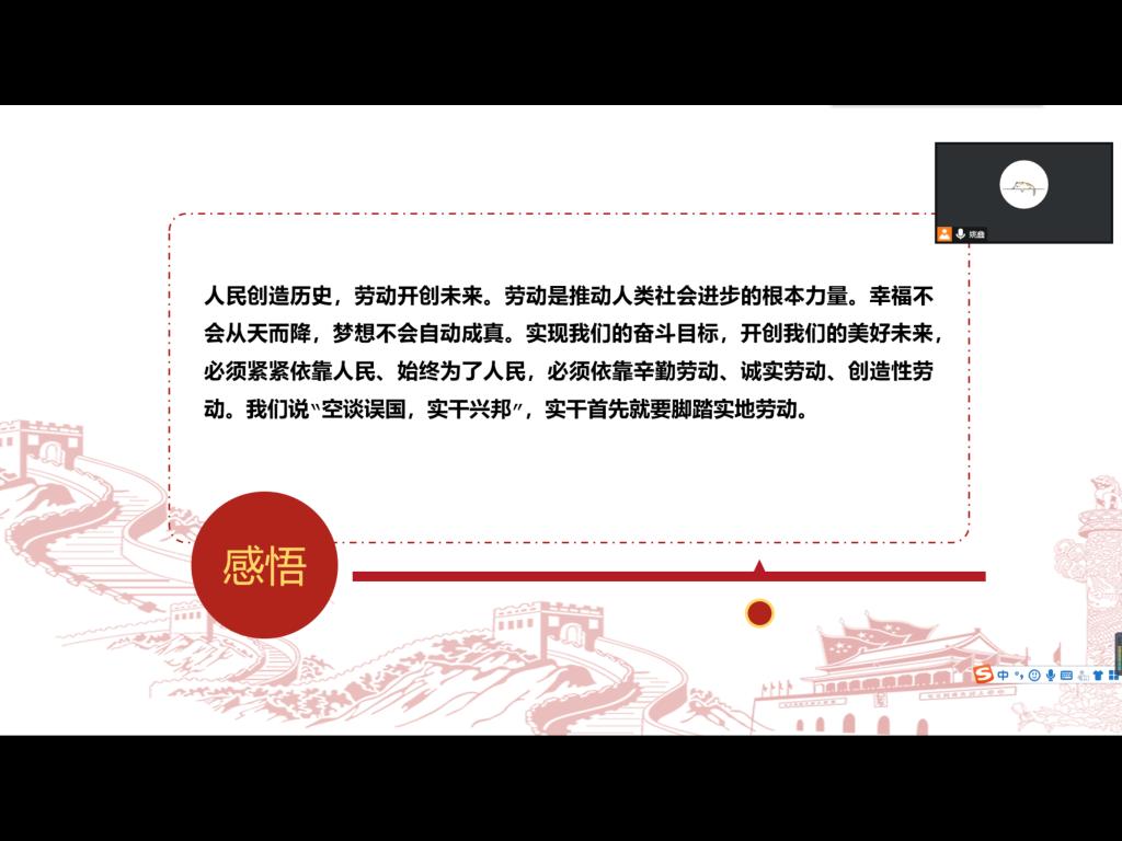 本次会议贯彻学校疫情防控相关要求,深入讲解了相关文件,进一步落实立德树人根本任务,推动学生德智体美劳全面发展,让同学们都能通过本次主题团日加深对“劳动的青春最出彩”的理解,更深刻地理解了劳动奉献精神。
