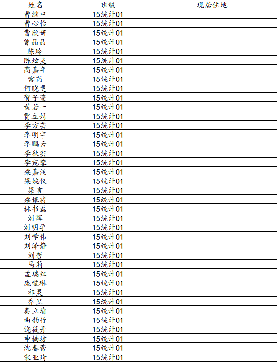 77779193永利2019届统计学一班校友名录